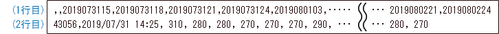 ただし、1列目、2列目は空欄で、3列目以降に、年月日時の10桁の数字が、翌々日の24時まで格納されます。
