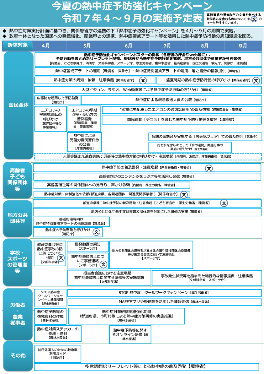 | 7月 | 梅雨明けに特に熱中症のリスクが高いことを国民へ注意喚起 |